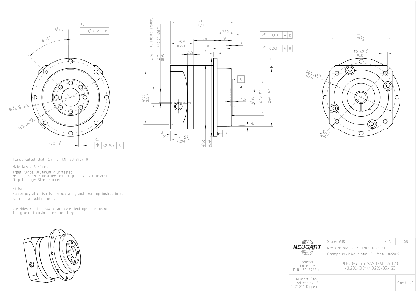 PLFN64 gearbox structure and dimension drawing